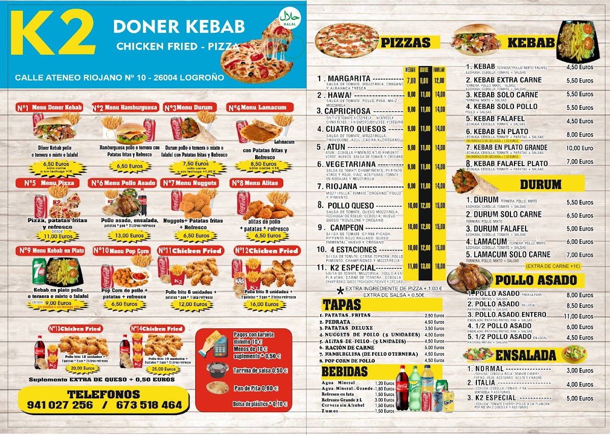 Welcome to K2 Doner Kebab Logroño, where flavor meets authentic kebab culture in the heart of Logroño. Nestled on C. Ateneo Riojano, this vibrant eatery presents a diverse menu that transcends the standard kebab offerings.